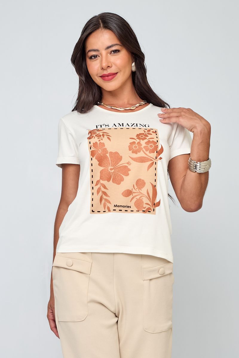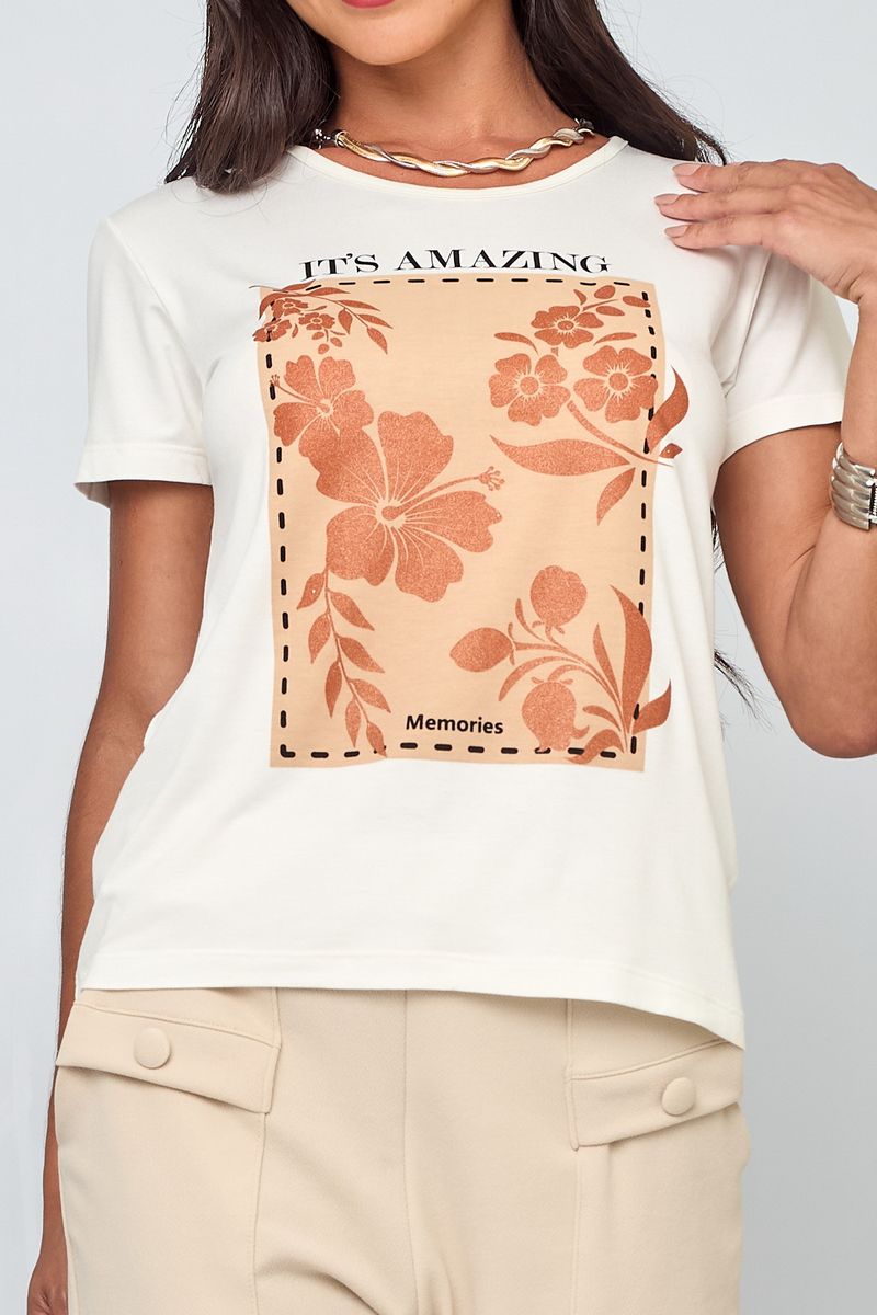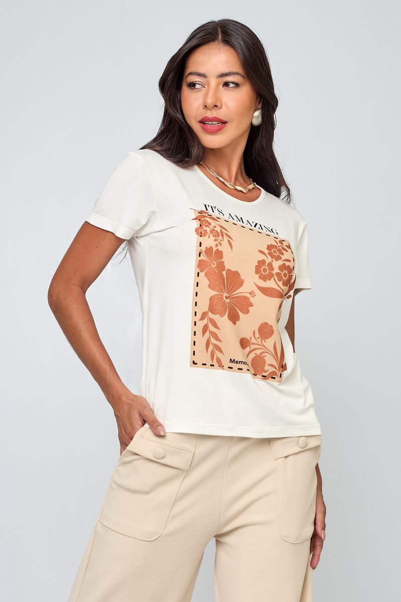 Blusa Feminina em Viscose Floral Branca