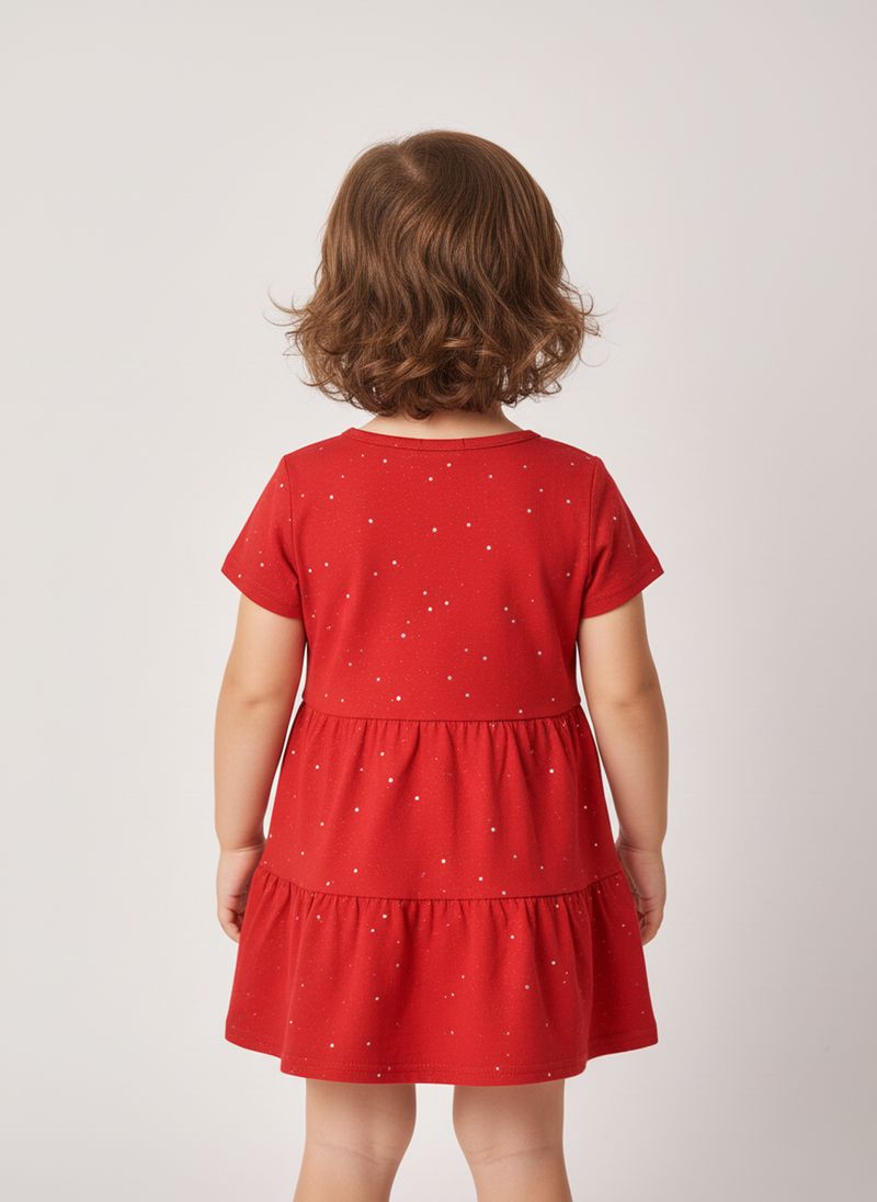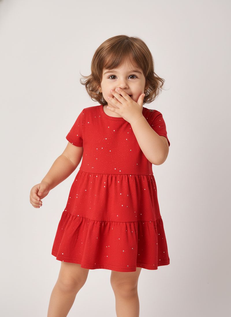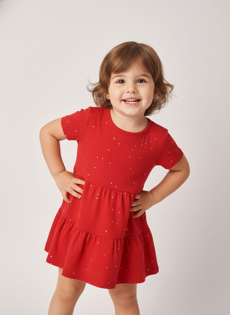 Deixe sua pequena brilhar com o Vestido Infantil Vermelho Cintilante Caedu. Confeccionado em meia malha, este vestido vibrante possui glitter e uma charmosa saia de marias, garantindo conforto e movimento para todas as aventuras. Perfeito para momentos especiais, ele combina estilo e alegria.