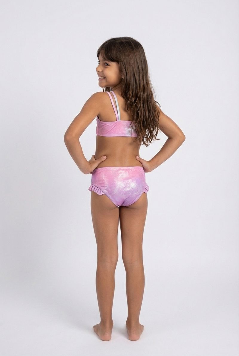 Para um look completo e cheio de estilo, combine o biquíni com um chapéu de sol colorido, óculos de sol infantis e sandálias confortáveis. Uma saída de praia leve e transparente pode adicionar um toque extra de charme, garantindo que sua pequena esteja sempre na moda e protegida.