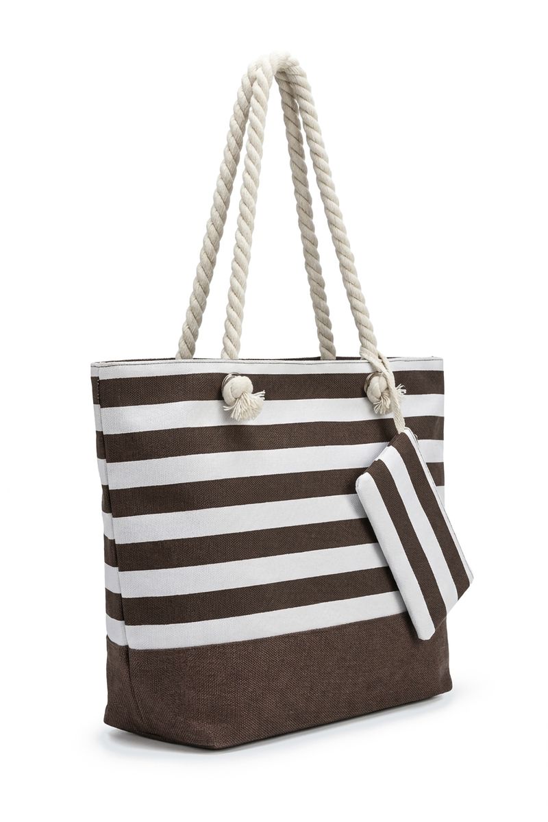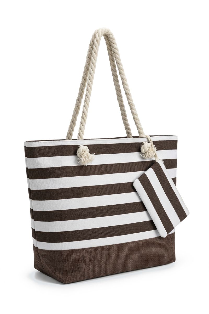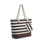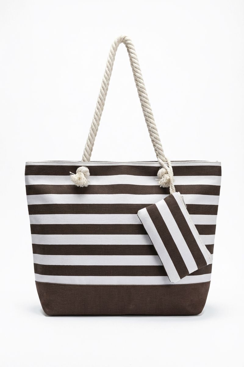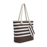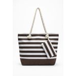 Bolsa Tote Feminina Caedu Listrada Marrom e Branca com Alças de Corda e Necessaire
