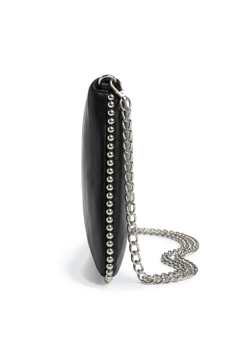 Eleve seu estilo com a Bolsa Clutch Feminina Caedu. Seu design elegante e compacto, em suede preto com rebites prateados e alça de corrente, oferece um toque de glamour. Um acessório essencial que une moda e sofisticação, perfeito para complementar seus looks com versatilidade.