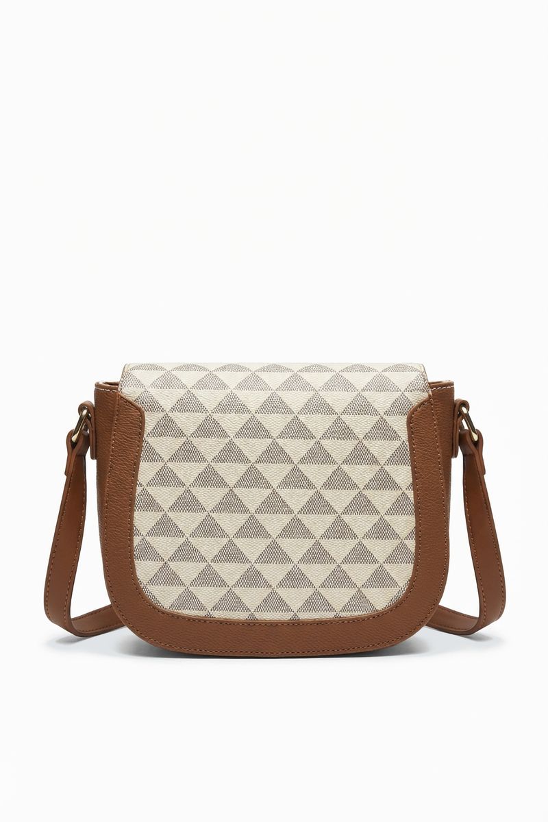 Eleve seu estilo com a Bolsa Feminina Transversal Caedu. Seu design saddle bag e estampa geométrica em tons de creme e marrom trazem um toque de moda e sofisticação. A alça ajustável garante praticidade e conforto para o seu dia a dia.