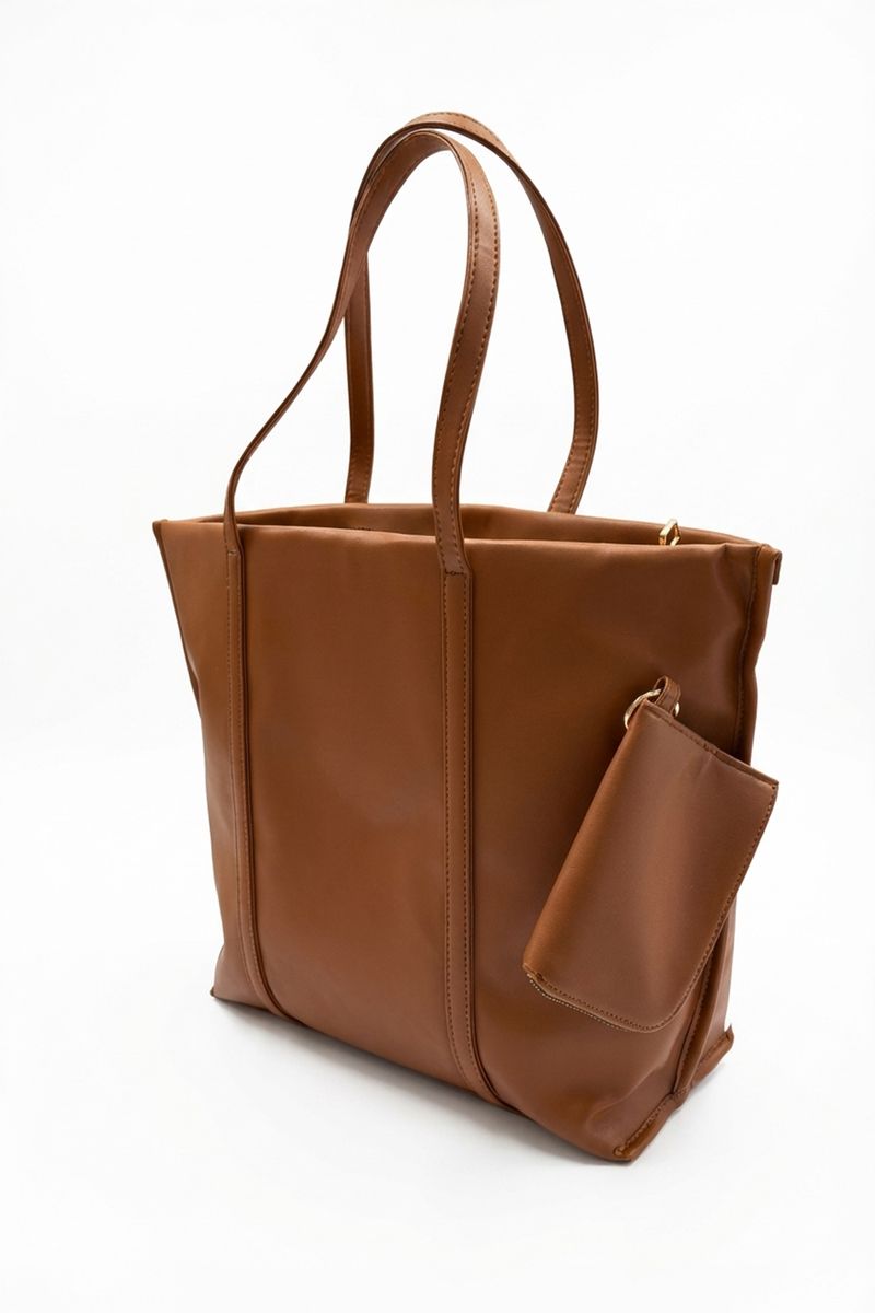 Eleve seu estilo com a Bolsa Feminina Tote Grande Marrom Médio Caedu. Perfeita para a mulher moderna, esta peça essencial de moda combina elegância clássica e versatilidade. Seu design minimalista em poliuretano de alta qualidade oferece amplo espaço e um toque sofisticado para suas roupas, ideal para qualquer ocasião.