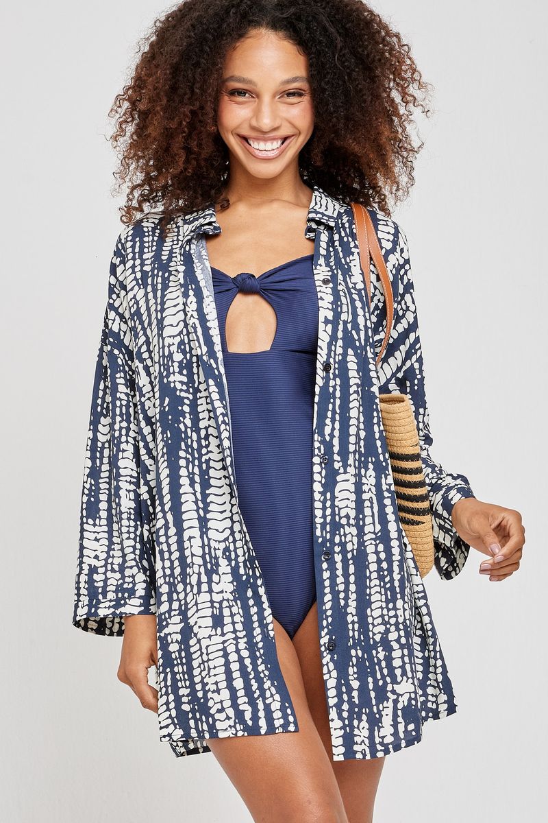 VestuárioOfertasModa PraiaFemininoSaídas de praiaAces fem aic023 chemise azul estampada estampado