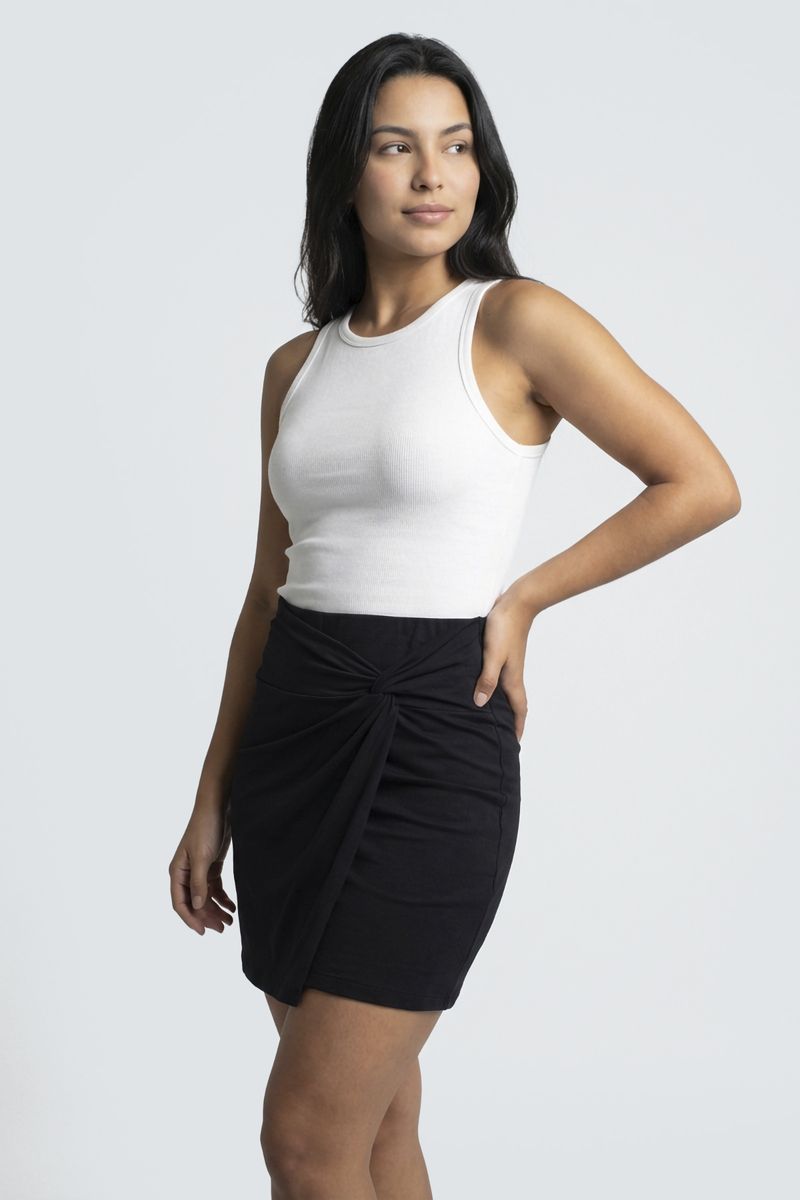 Realce seu estilo com a Saia Curta Preta Caedu, perfeita para momentos de lazer e encontros casuais. Seu design moderno com nó frontal cria um efeito drapeado único, enquanto o tecido liganete 100% poliéster garante conforto e caimento impecável. Uma peça essencial para a moda feminina.