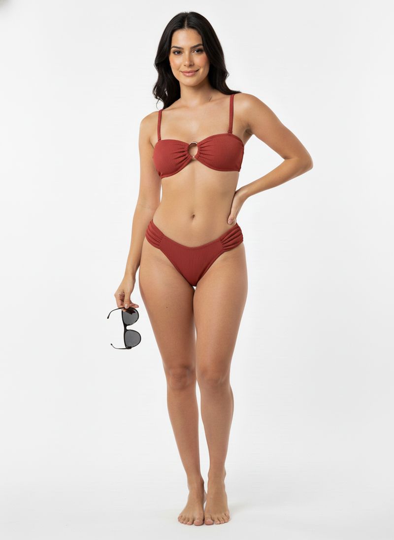 Top Bandeau Caedu Vinho Marsala Canelado com Argola: Estilo e Conforto