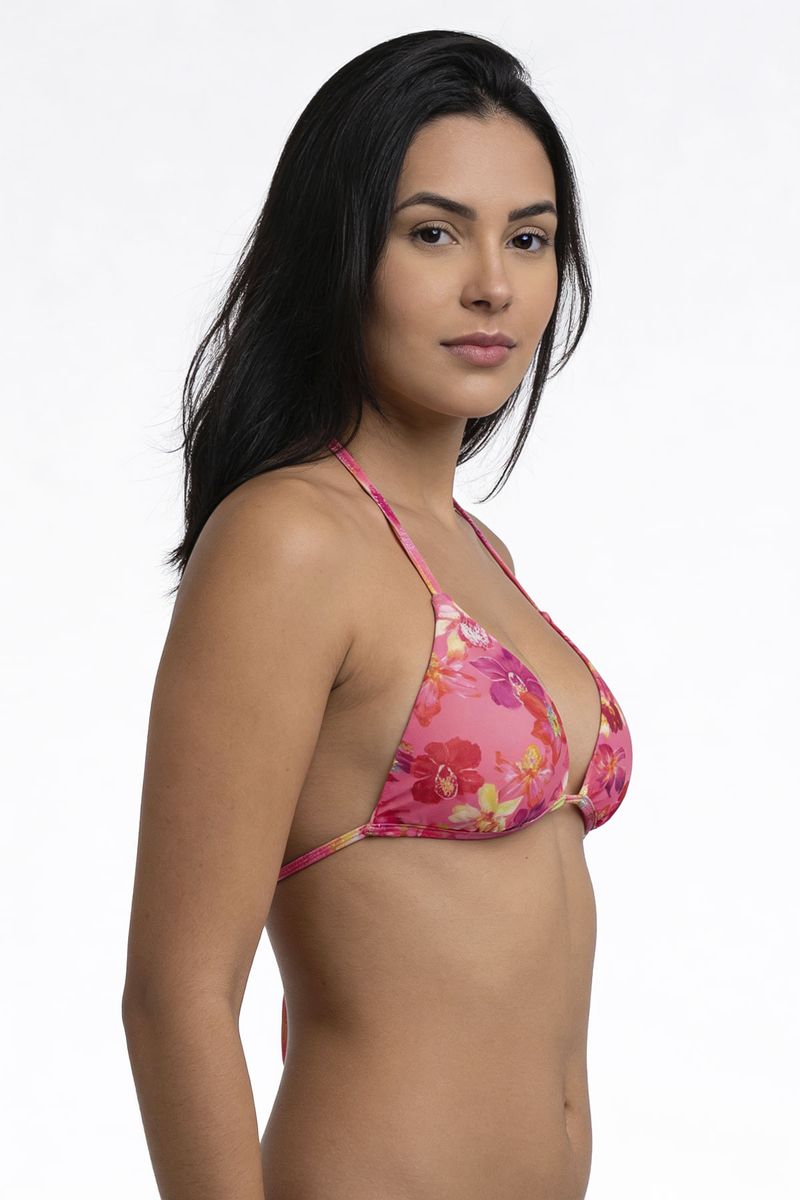 Desperte sua beleza com o Biquíni Top Triângulo Feminino Rosa Tropical Caedu. Sua estampa vibrante e amarração ajustável na nuca e costas oferecem estilo e conforto. Perfeito para realçar sua silhueta na moda praia com um toque de elegância.
