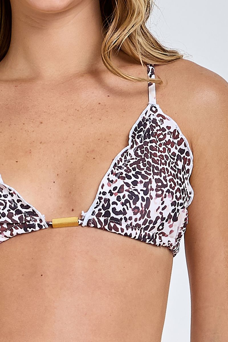 Ideal para seus momentos de lazer, o Biquíni Top Cortininha Onça Ripple com Elo Dourado é perfeito para a praia, piscina, resorts e passeios de barco. Desfrute de conforto e estilo em qualquer ocasião.