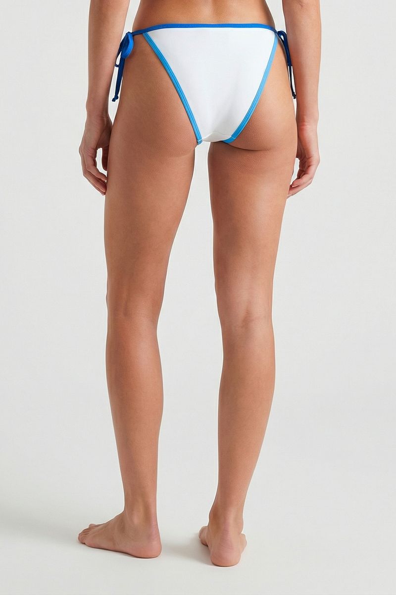 Desfrute do verão com a Calcinha de Biquíni Caedu, perfeita para quem busca estilo e conforto. Seu design branco com viés azul e amarrações laterais oferece um ajuste ideal, valorizando sua silhueta. Ideal para a moda praia, esta peça é um item essencial para seus dias de sol.