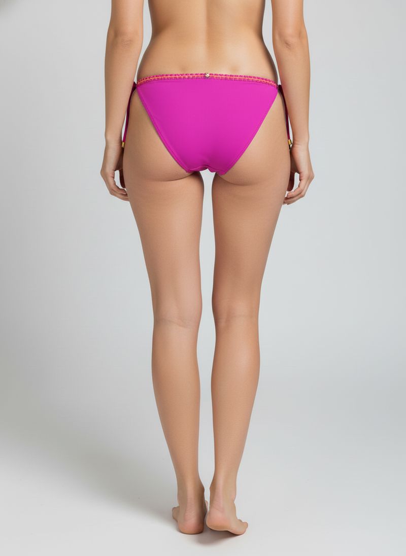 Combine sua calcinha fúcsia com tops de biquíni em tons neutros ou complementares para um visual harmonioso. Adicione uma saída de praia leve, sandálias confortáveis e um chapéu de palha para um look despojado. Para um toque de elegância, opte por acessórios dourados que realcem as ponteiras metálicas.