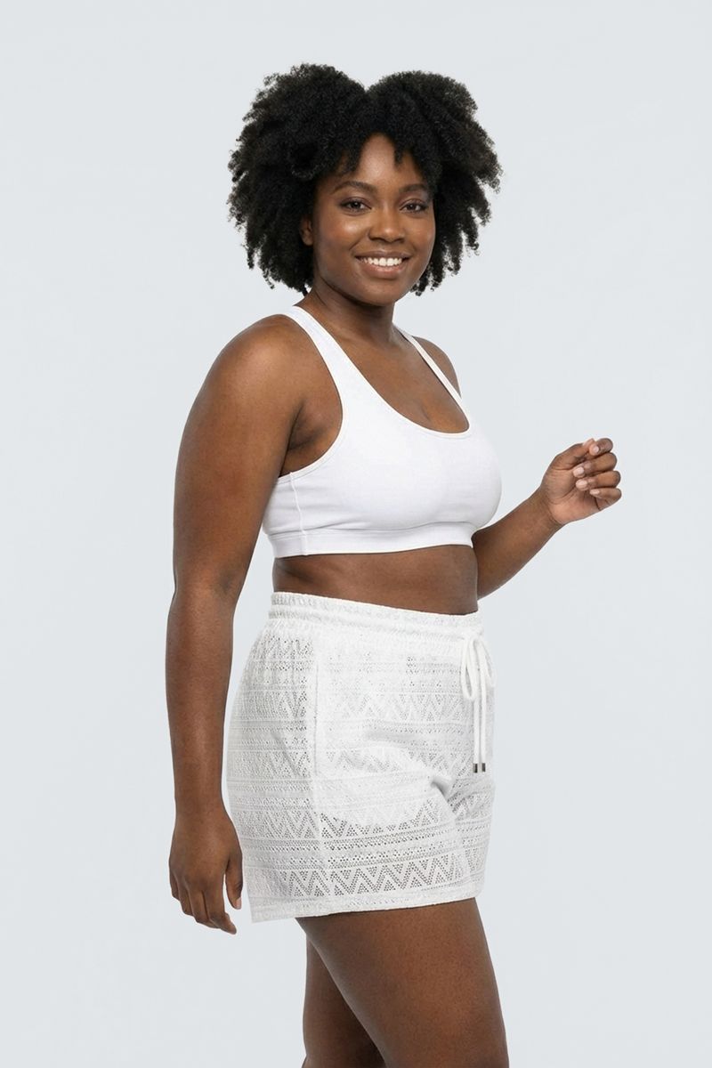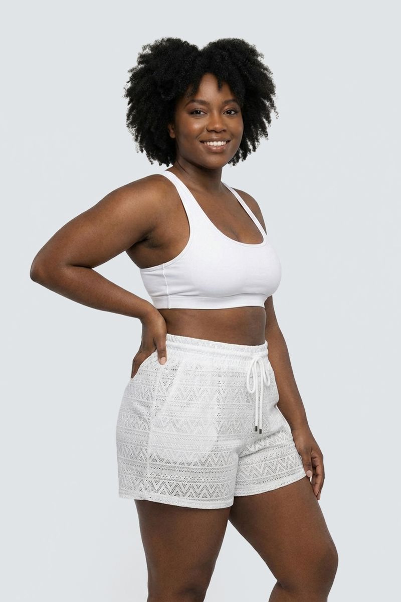 Perfeito para dias ensolarados, o Shorts de Praia Feminino Rendado Branco Confortável é ideal para usar na praia, à beira da piscina, em passeios à beira-mar ou como uma saída de praia estilosa.