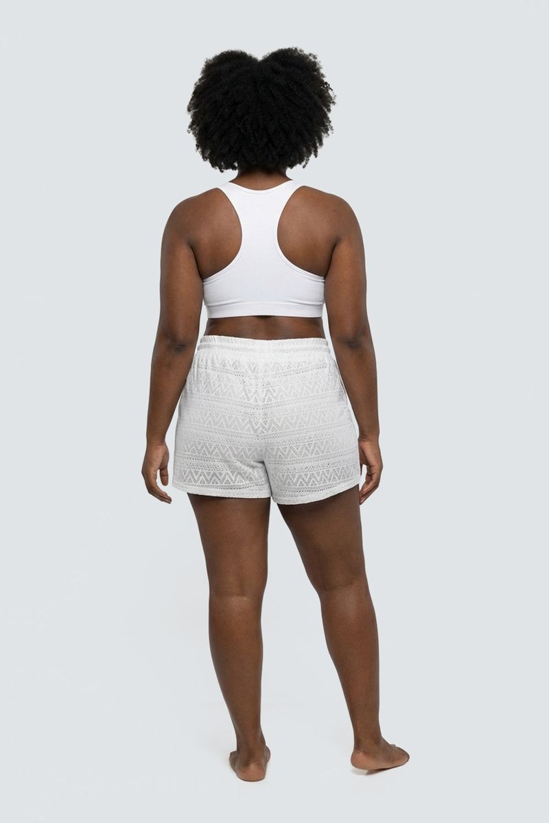 O Shorts de Praia Feminino Rendado Branco Confortável Caedu é a peça ideal para seus momentos de lazer. Com design rendado exclusivo e cós ajustável, oferece estilo e bem-estar. Feito em poliéster e elastano, garante caimento perfeito e toque suave, realçando sua beleza natural para a moda praia.