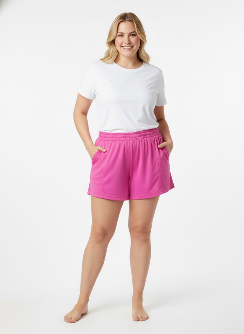 Desfrute do verão com o Shorts de Praia Feminino Aces Caedu. Em um vibrante rosa pink, este shorts oferece conforto e estilo para seus momentos de lazer. Confeccionado em 100% poliéster (meia malha), possui cós elástico franzido e design moderno, sendo a saída de praia perfeita.