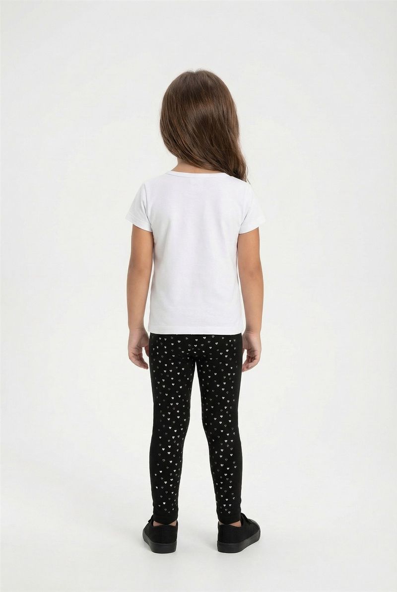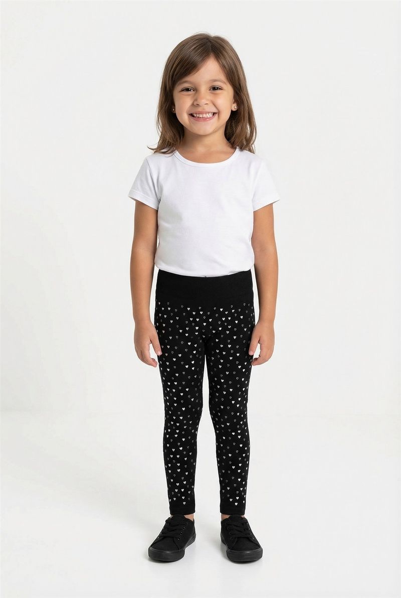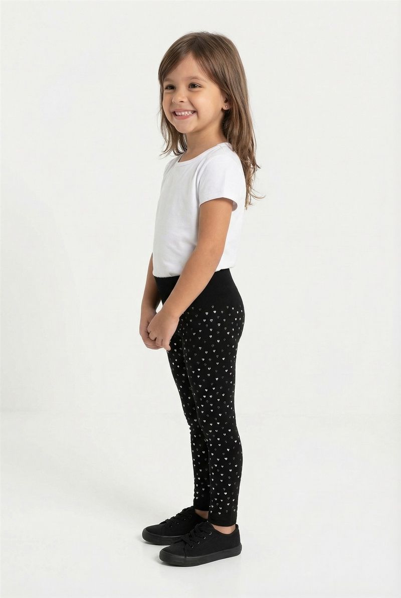 A Legging Infantil Térmica Caedu é a escolha perfeita para manter as pequenas aquecidas com muito estilo. Com sua estampa de corações prateados em foil e tecido macio de poliéster e elastano, oferece conforto e um toque de brilho para o dia a dia. Uma roupa essencial para o guarda-roupa infantil.