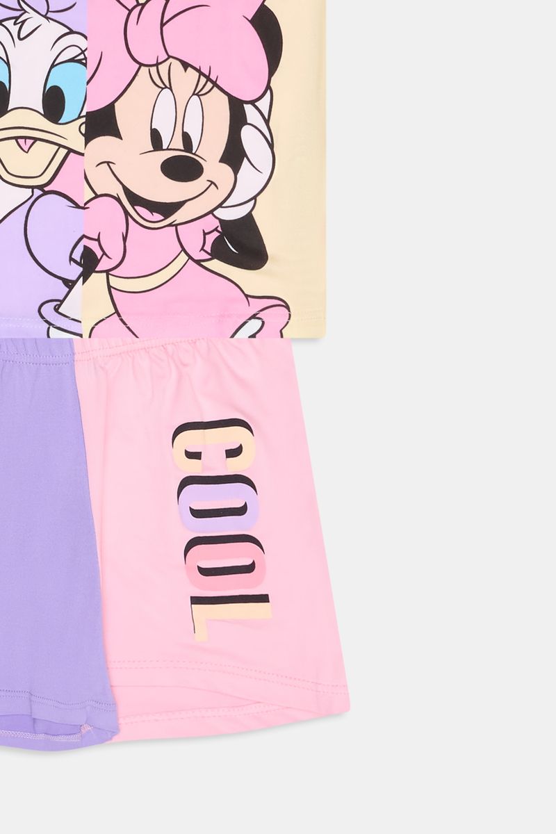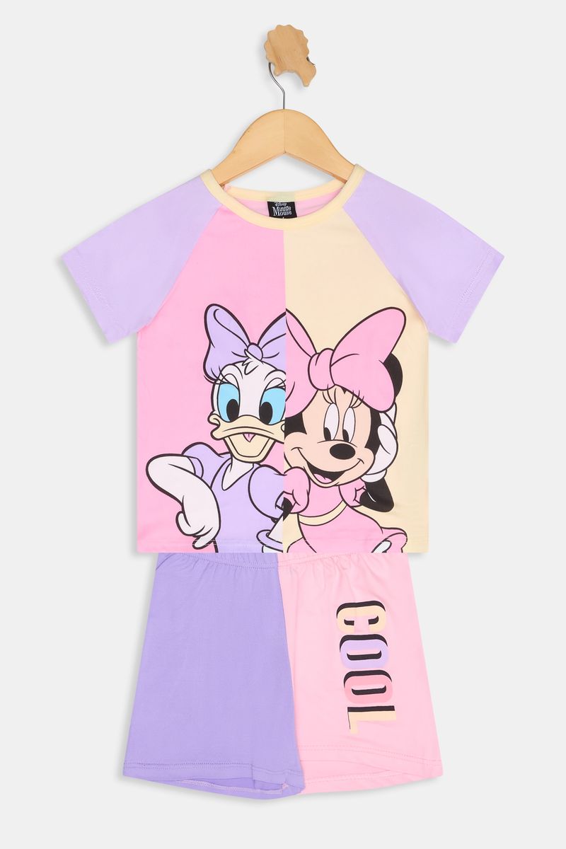 Desperte a magia com o Pijama Infantil Caedu Minnie e Margarida! Confeccionado em POLYBRUSH com 95% poliéster e 5% elastano, oferece conforto e maciez. O conjunto estampado, com camiseta e shorts, é perfeito para noites de sono tranquilas e cheias de estilo. Uma roupa ideal para as pequenas fãs da Disney!