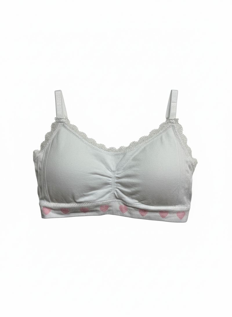 Descubra o Sutiã Bralette Juvenil Caedu, perfeito para quem busca conforto e estilo. Com design sem costura, detalhes em renda delicada e charmosos corações rosa, ele oferece um ajuste perfeito e liberdade de movimento. Uma peça essencial na moda íntima, ideal para o dia a dia.