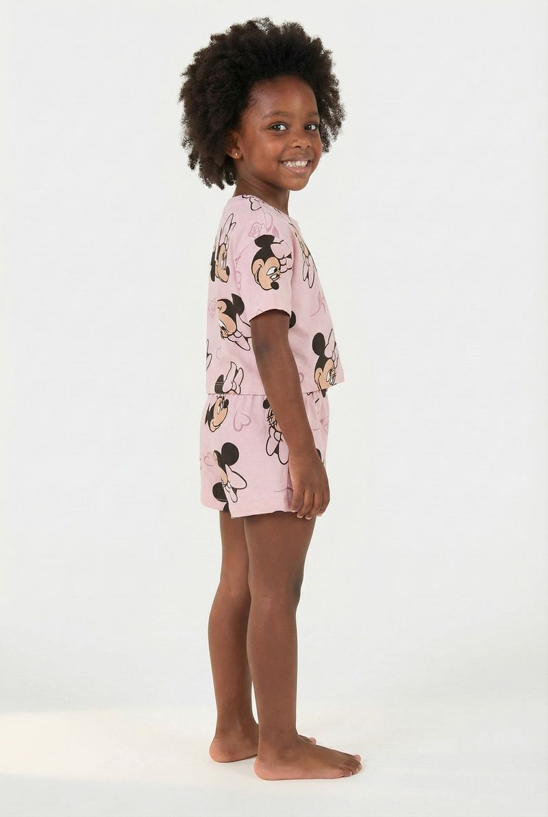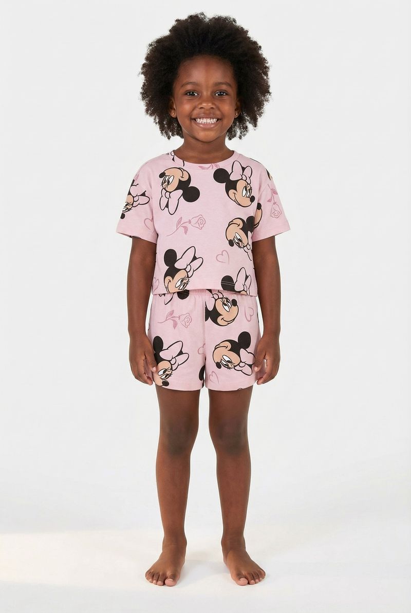 O Pijama Curto Infantil Minnie Mouse Rosa Caedu oferece conforto e estilo para as meninas. Este conjunto vibrante, com blusa manga curta e shorts ajustável, apresenta a adorável Minnie Mouse, ideal para momentos de diversão e descanso.