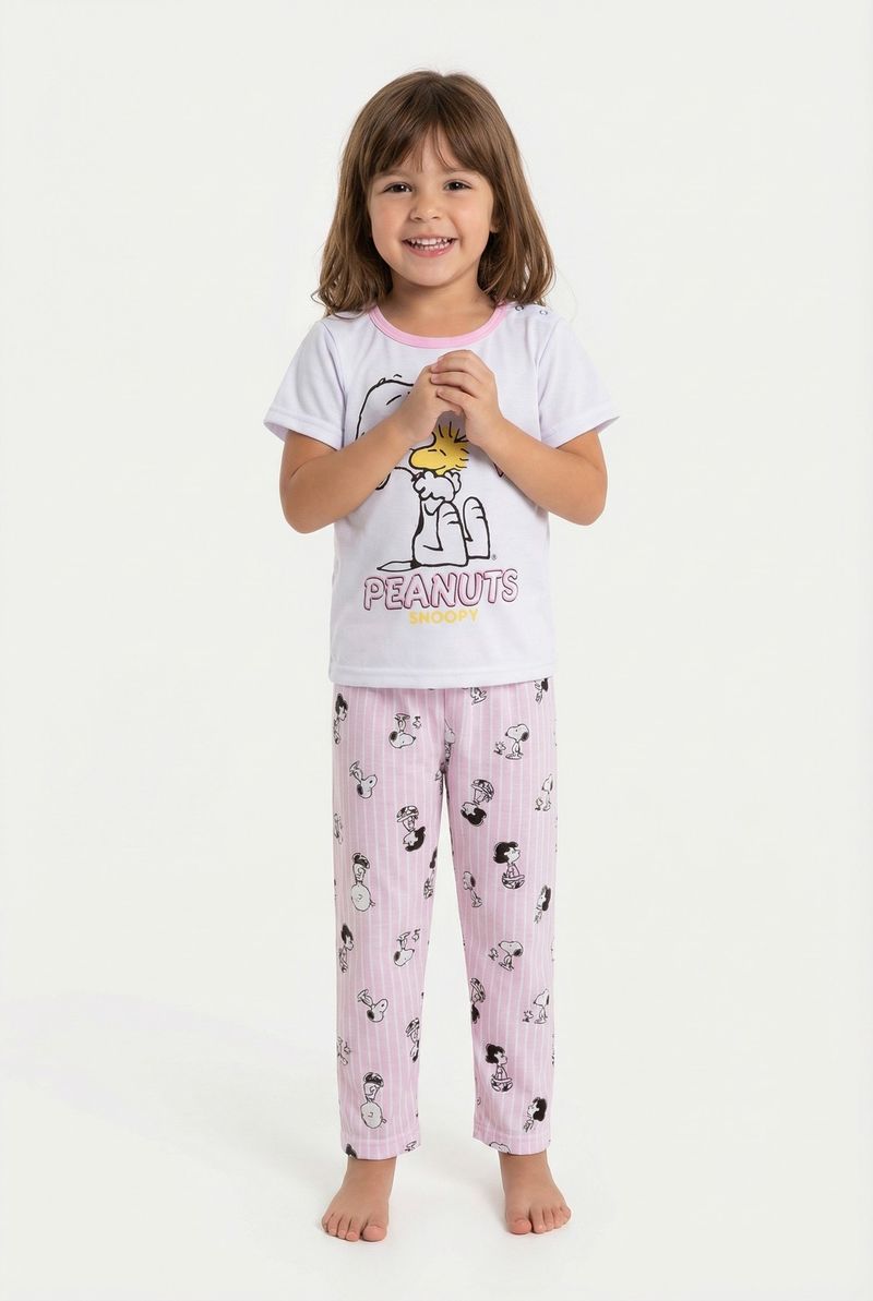 Este conjunto de pijama infantil da Caedu oferece o máximo de conforto e estilo para as noites da sua pequena. Com uma blusa charmosa e uma calça estampada com os adoráveis Snoopy e Woodstock, é a roupa perfeita para momentos de descanso e diversão. Uma moda que une carinho e alegria.