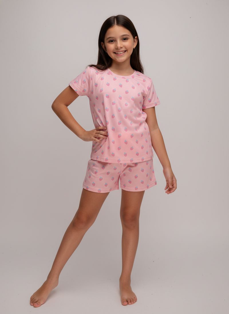 O Pijama Curto Infantil Moranguinho Rosa Caedu é perfeito para as noites de sono das meninas, unindo conforto e diversão. Confeccionado em Polybrush macio (95% poliéster, 5% elastano), proporciona um toque suave e leve na pele. A estampa charmosa da Moranguinho e o conjunto de blusa de manga curta e shorts garantem liberdade de movimento e noites tranquilas. Ideal para usar como roupa de dormir infantil e relaxar em casa.