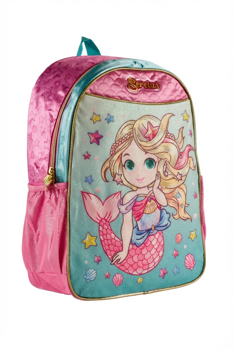 A Mochila de Costas Infantil Sereia Encantada Caedu é perfeita para as pequenas sonhadoras! Com design vibrante e estampa brilhante de sereia, oferece conforto com alças acolchoadas e praticidade com bolso lateral. Ideal para o dia a dia escolar.