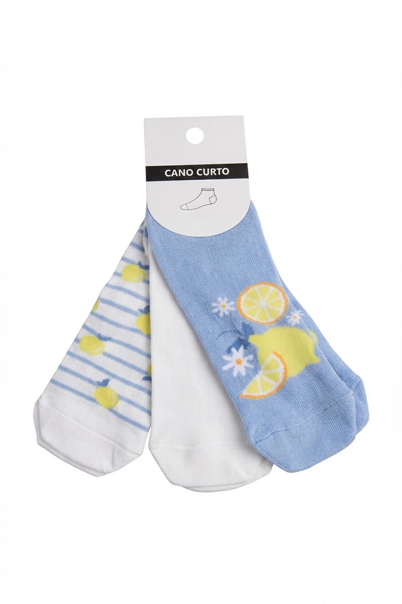 Eleve seu estilo com o Kit 3 Meias Cano Curto Femininas Estampadas Caedu. Confeccionadas em algodão macio, estas meias combinam conforto e um toque de alegria com suas estampas vibrantes de limões e listras. Perfeitas para adicionar personalidade ao seu dia a dia, garantindo bem-estar e um visual único com a moda Caedu.