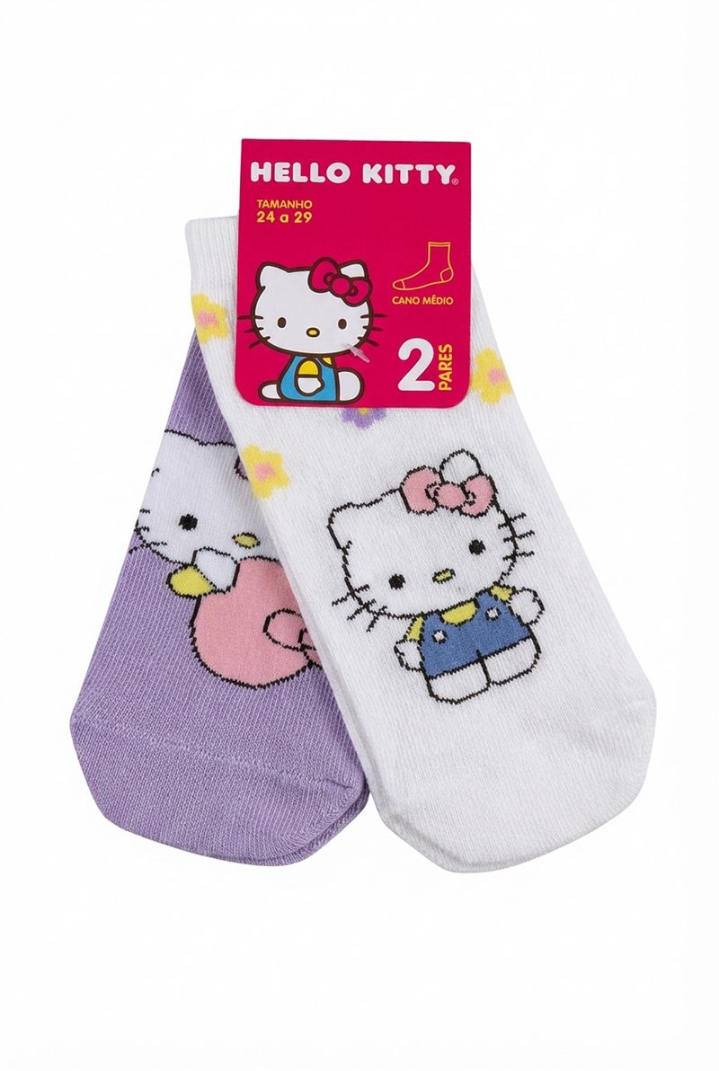 Conforto e estilo com as Meias Infantis Hello Kitty Caedu. Este kit de 2 pares, em COTTON, traz estampas fofas e vibrantes da Hello Kitty, ideal para o dia a dia, adicionando alegria e moda aos pés.