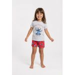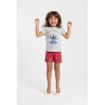 Conforto e magia no Pijama Infantil Caedu Disney Stitch Natal! Em 100% algodão de meia malha, este conjunto de blusa cinza e shorts vermelho com estampa 'Merry Stitchmas' do Stitch é a roupa infantil ideal para noites de alegria.