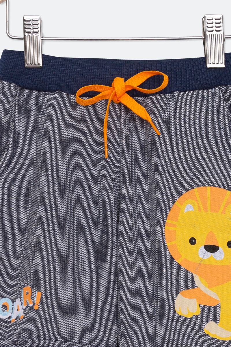 Bermuda Infantil em Malha com Estampa Leão Azul e Mescla Tam 1 a 3