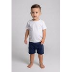Descubra o conforto e estilo da moda infantil com o shorts Caedu azul escuro. Feito em algodão macio de moletom sem felpa, possui elástico na cintura, cordão ajustável, bolsos e barra dobrada, ideal para o dia a dia.