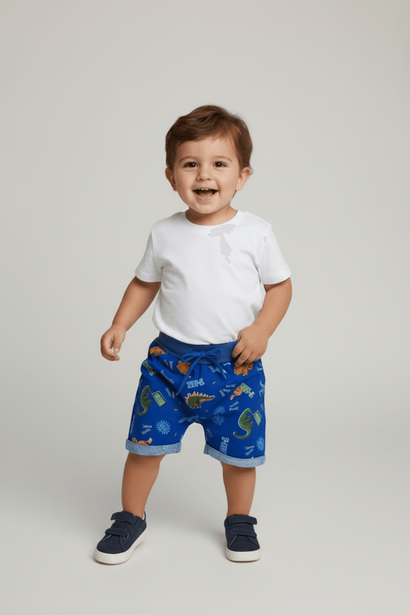 A Bermuda Infantil Caedu em moletom sem felpa oferece o máximo conforto para os pequenos exploradores. Com uma vibrante estampa de dinossauros em azul royal, esta peça é perfeita para aventuras. Seu design prático e ajuste ideal garantem liberdade e estilo para o dia a dia. Uma roupa infantil que une diversão e qualidade Caedu.