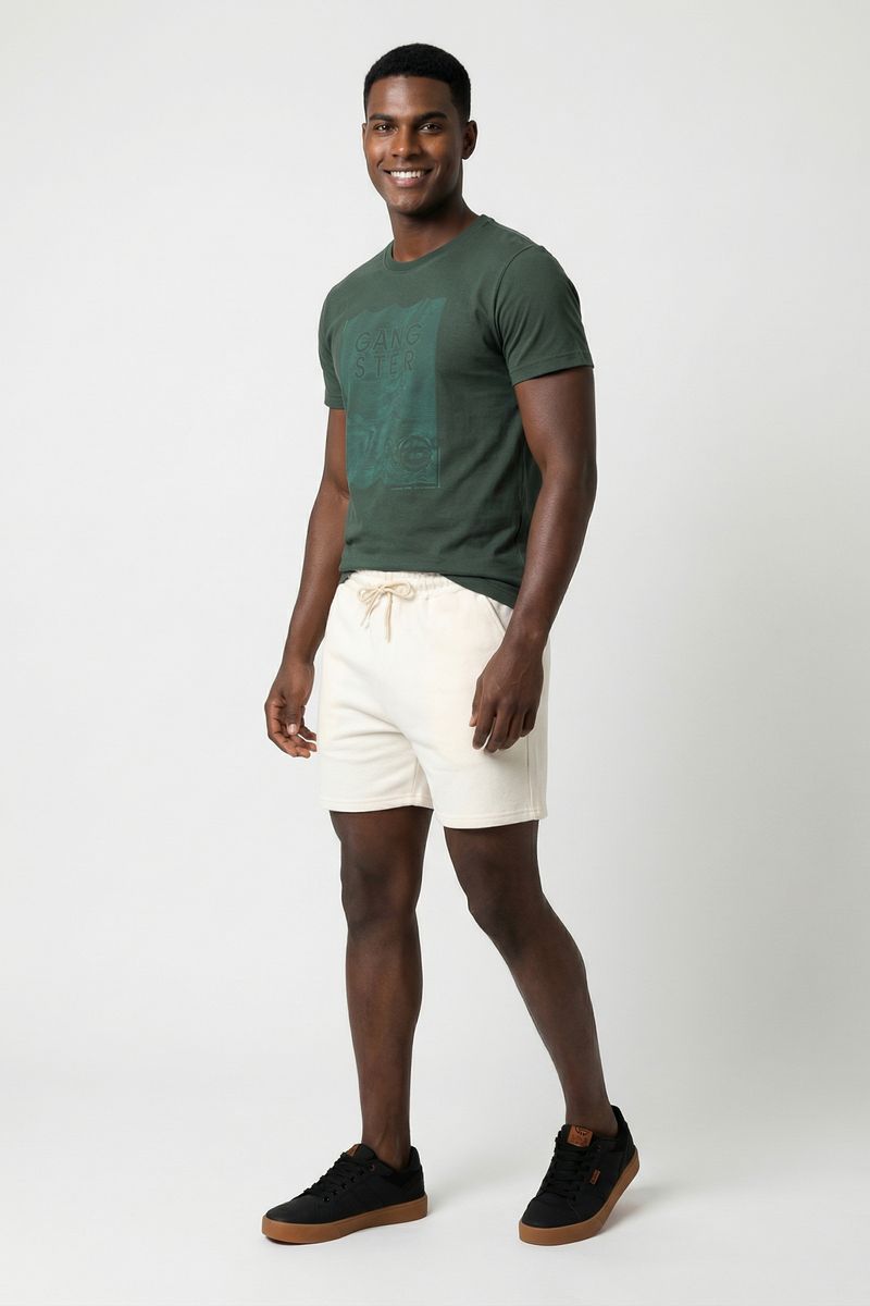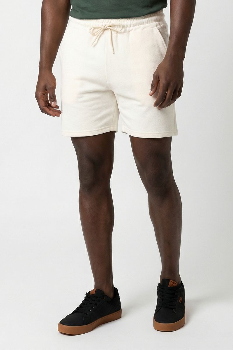 A Bermuda Masculina Off White de Moletinho Caedu oferece conforto casual para o seu dia a dia. Com ajuste de cordão na cintura e bolsos laterais, esta roupa versátil em moletom sem felpa é ideal para quem busca estilo e qualidade. Encontre na Caedu.