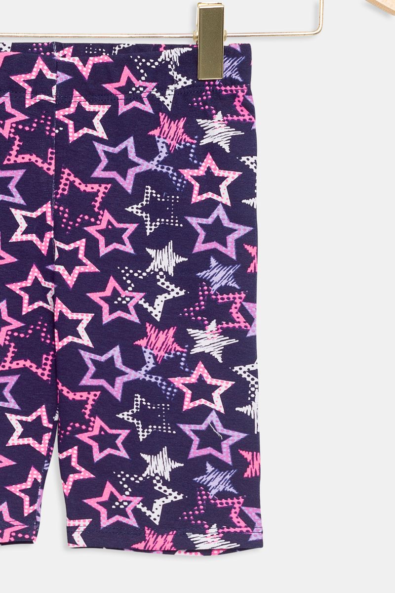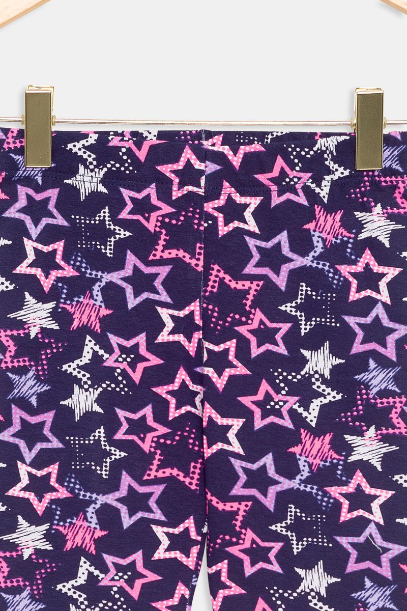 Bermuda ciclista infantil com estampa de estrelas, em azul escuro.