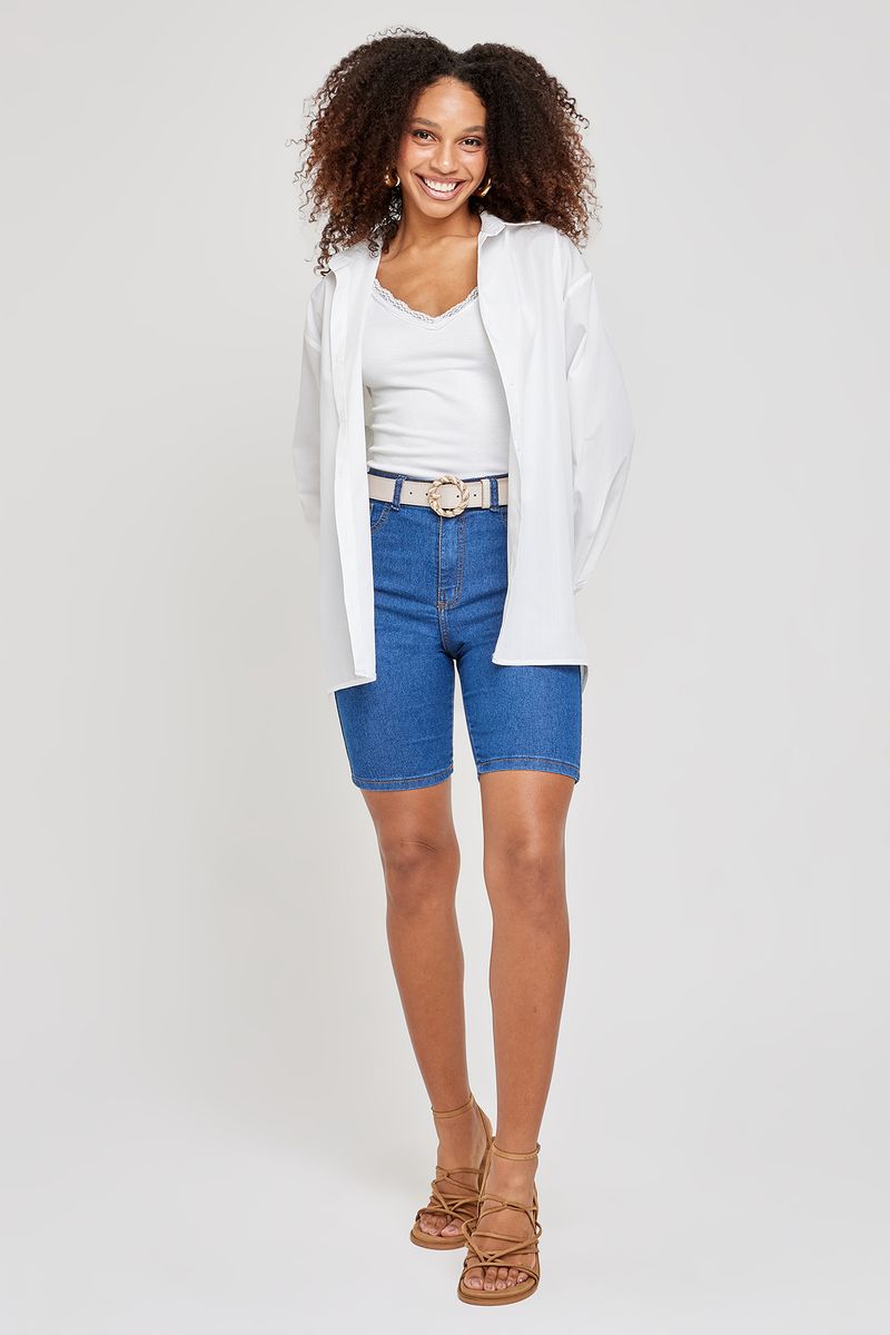 A Bermuda Ciclista Jeans Feminina Caedu Azul Médio é a roupa ideal para seu estilo. Em sarja 100% algodão, oferece conforto e toque suave. Peça moderna e versátil, nas Lojas Caedu com preco bom.