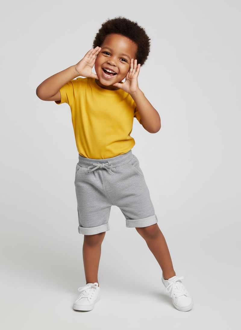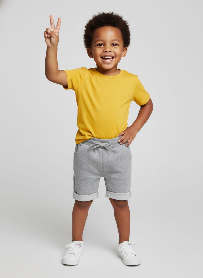 Descubra o shorts infantil de moletom Caedu, perfeito para o dia a dia. Com tecido cinza mescla claro sem felpa, oferece máximo conforto e liberdade. Seu cós elástico com cordão ajustável e barras dobradas garantem um visual moderno e prático para os pequenos.