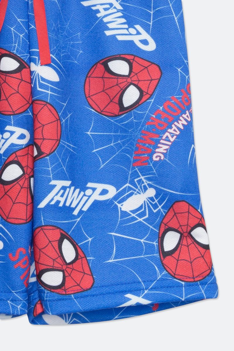 Bermuda Infantil em Moletom com Estampa Homem Aranha Azul Tam 4 a 10
