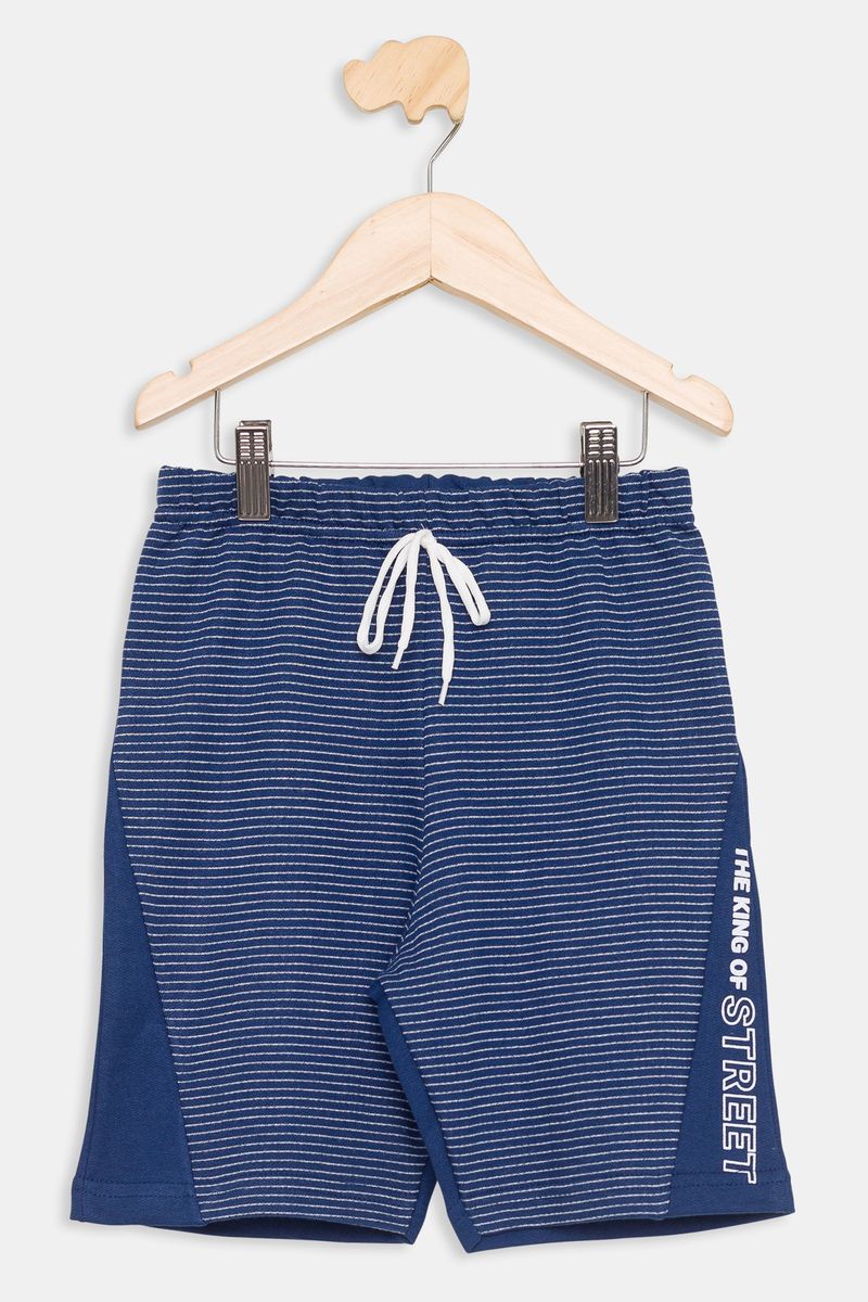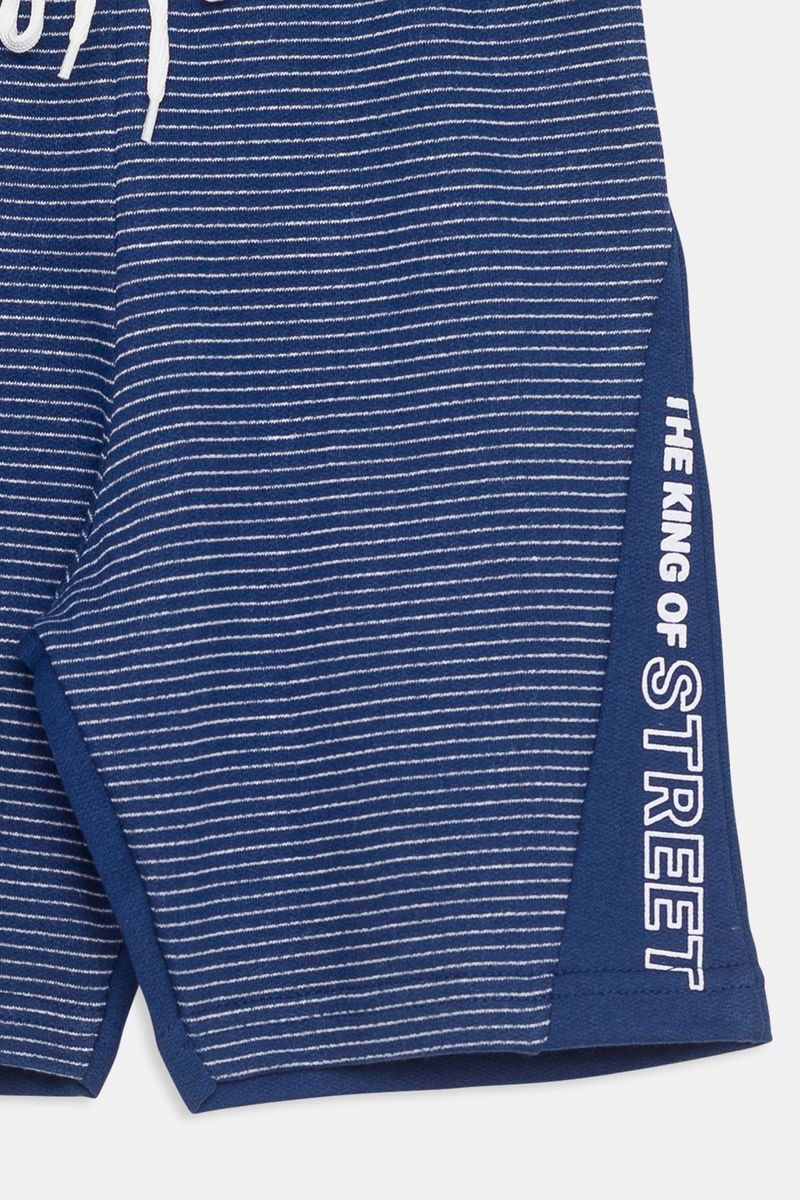 Bermuda infantil em moletom listrada azul escuro, cheia de estilo para os dias de lazer.