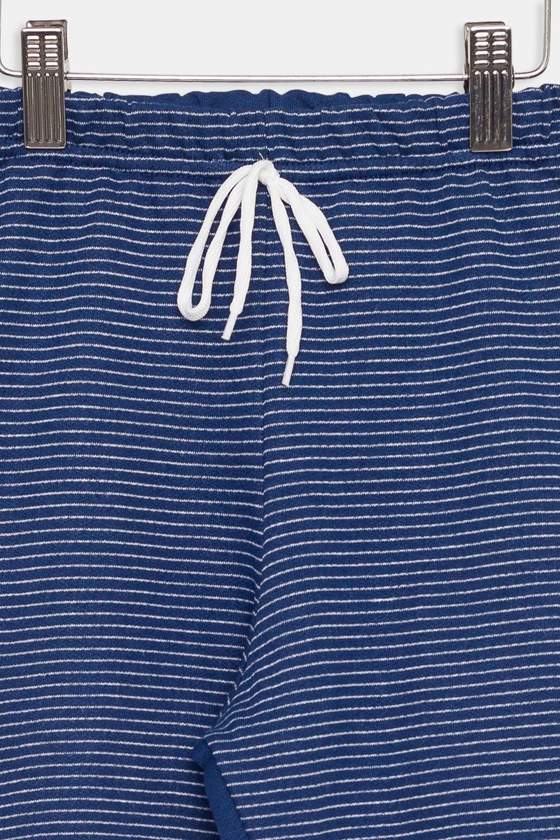 Bermuda Infantil em Moletom Listrada Azul Escuro Tam 4 a 8