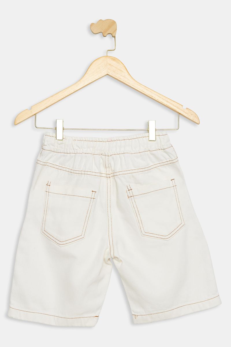 Descubra a Bermuda Jeans Juvenil Off White Caedu, perfeita para um visual casual e moderno. Com corte reto, tecido em denin de algodão/elastano e cintura ajustável, oferece conforto e estilo para todas as aventuras. Uma peça versátil e tendência na moda juvenil.