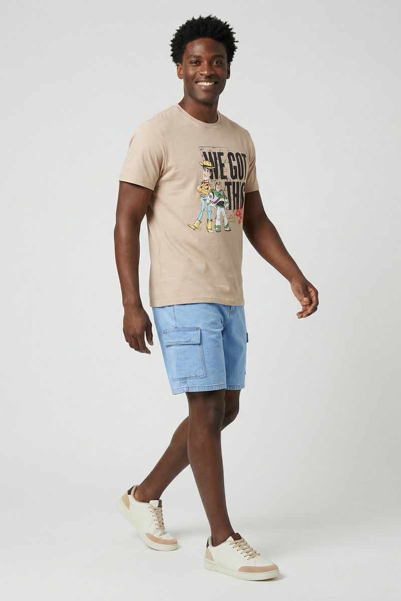 Combine sua bermuda cargo jeans azul claro com camisetas básicas ou estampadas para um visual descontraído. Para um toque mais arrumado, opte por uma camisa polo. Nos pés, tênis casuais ou sapatênis complementam o look. Adicione um boné para um estilo ainda mais despojado e completo, perfeito para a moda atual.