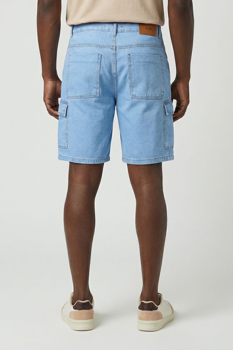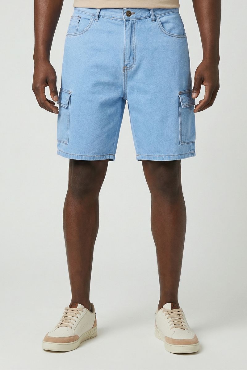 A Bermuda Masculina Cargo Jeans Azul Claro Caedu combina estilo casual e conforto para o seu dia a dia. Feita em denin de tonalidade azul clara, possui design cargo com bolsos laterais e costuras duplas, ideal para quem busca roupas práticas e modernas na moda masculina.