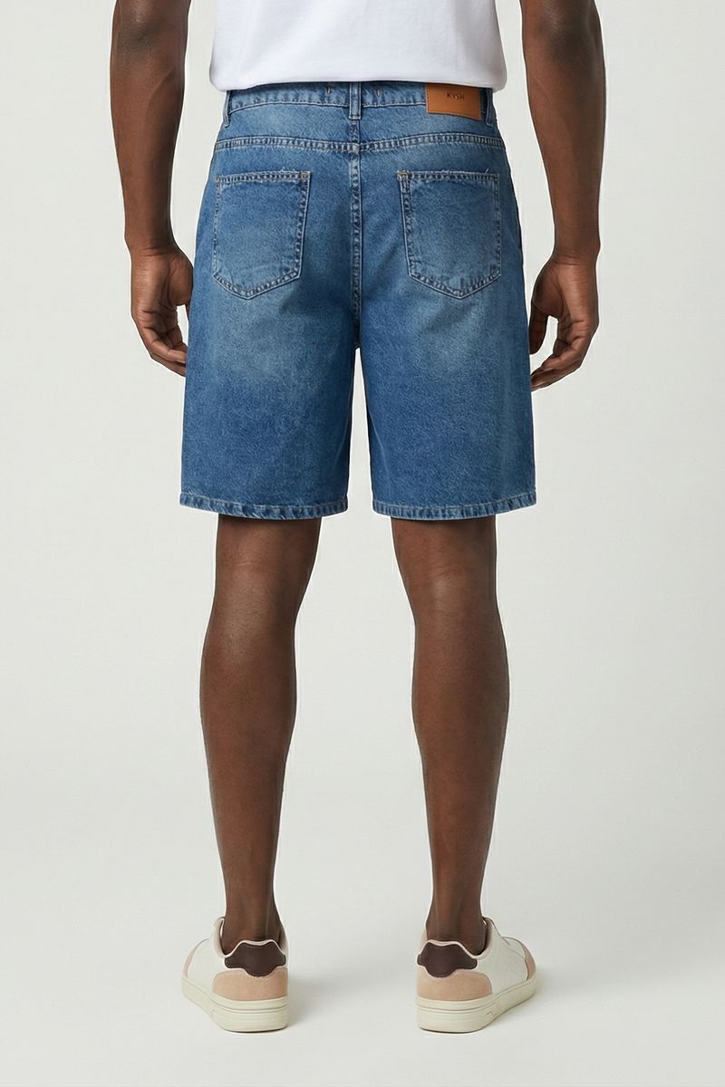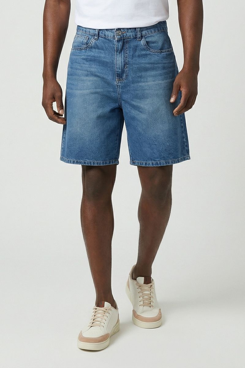 A Bermuda Jeans Masculina Super Baggy Azul Médio Caedu oferece conforto e estilo. Em 100% algodão denim, sua modelagem super baggy e o tom azul desbotado criam um visual moderno. Ideal para o dia a dia.