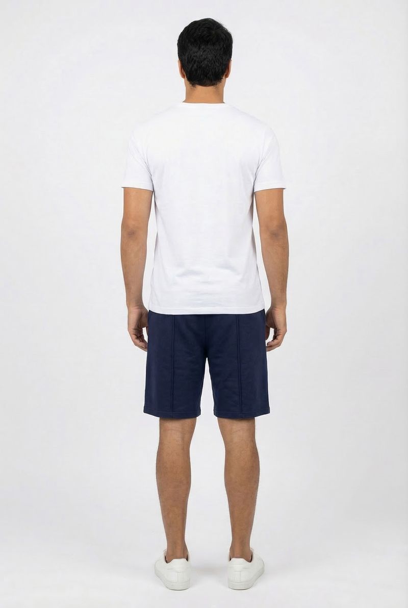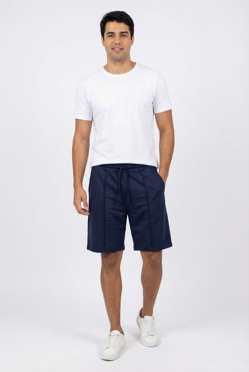 A Bermuda Masculina Moletom Nervura Azul Marinho Caedu redefine o conforto e estilo casual. Feita em moletom sem felpa 100% algodão, oferece toque suave e caimento perfeito. Ideal para o dia a dia, esta peça versátil da Caedu é um item essencial para sua moda.