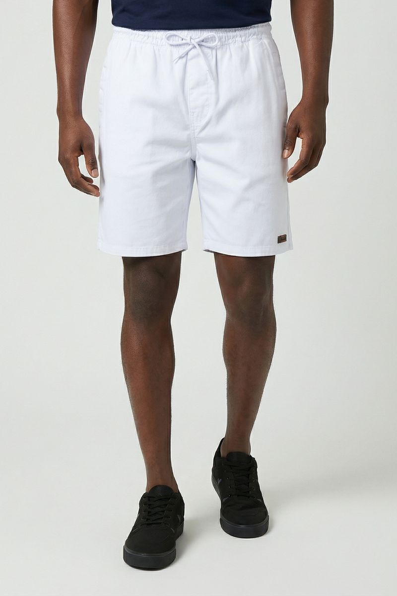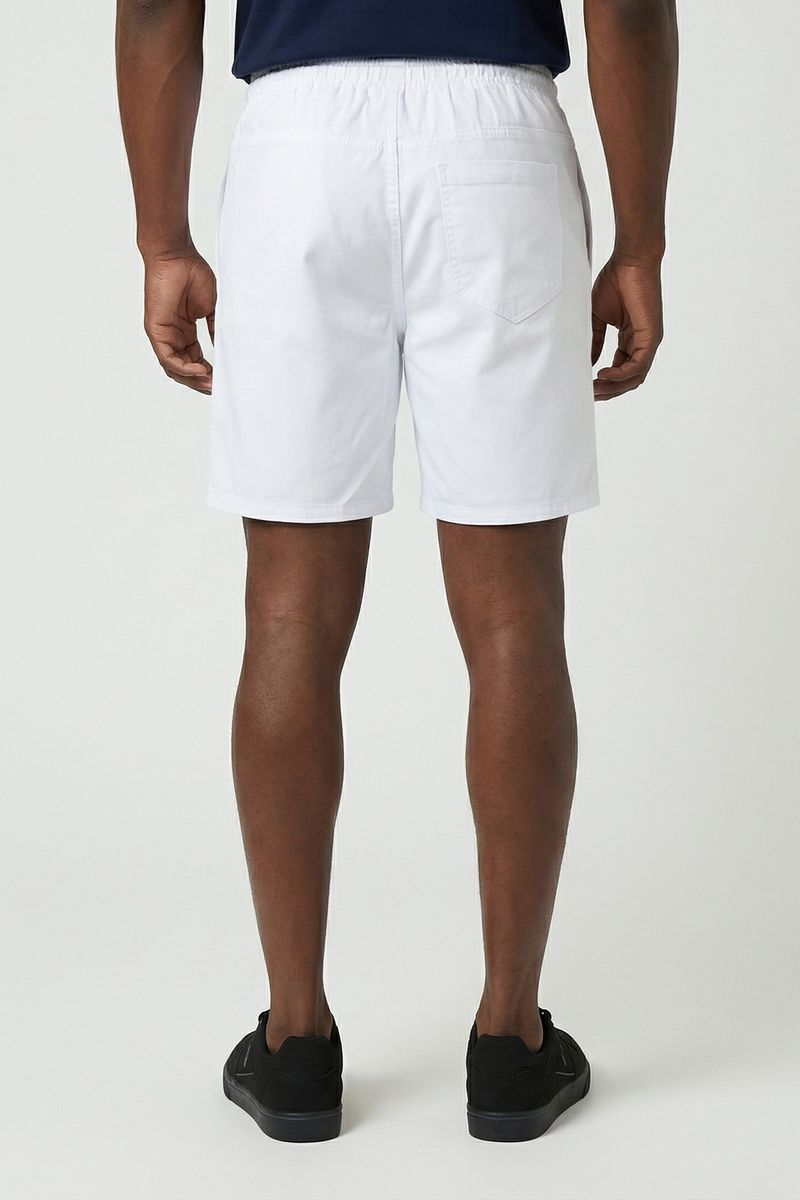 Bermuda Masculina de Sarja Branca Caedu. Com cós elástico e cordão ajustável, esta peça de