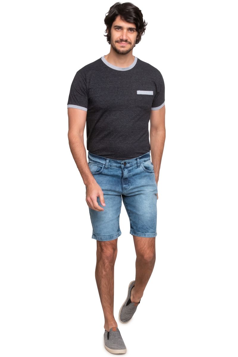 Bermuda Masculina Reta Jeans Estonado Médio
