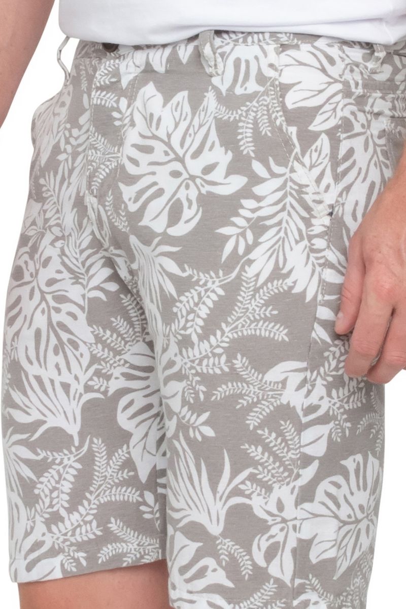 Bermuda Masculina com Estampa Folhagem Bege