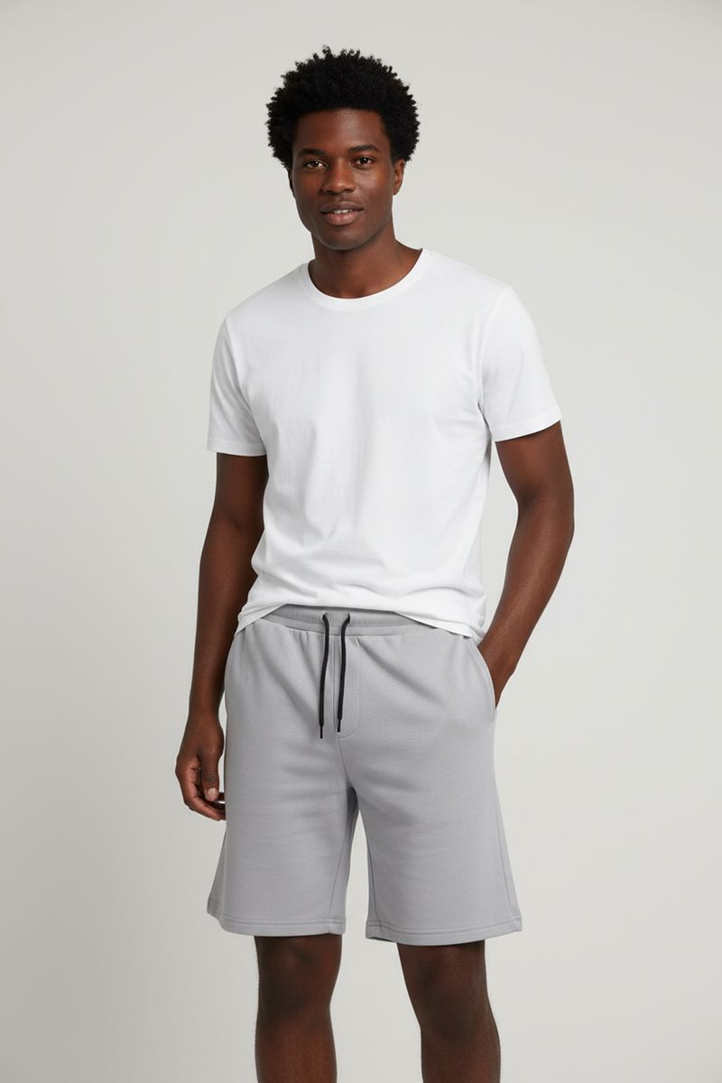 Experimente o máximo de conforto e estilo urbano com a Bermuda Masculina Caedu. Feita em moletom sem felpa 100% algodão, esta roupa masculina cinza claro possui cordão ajustável e bolsos laterais, ideal para o dia a dia. Combine praticidade e tendência em um só produto.