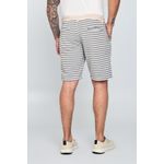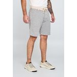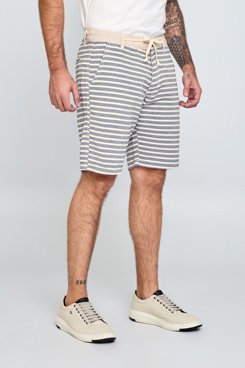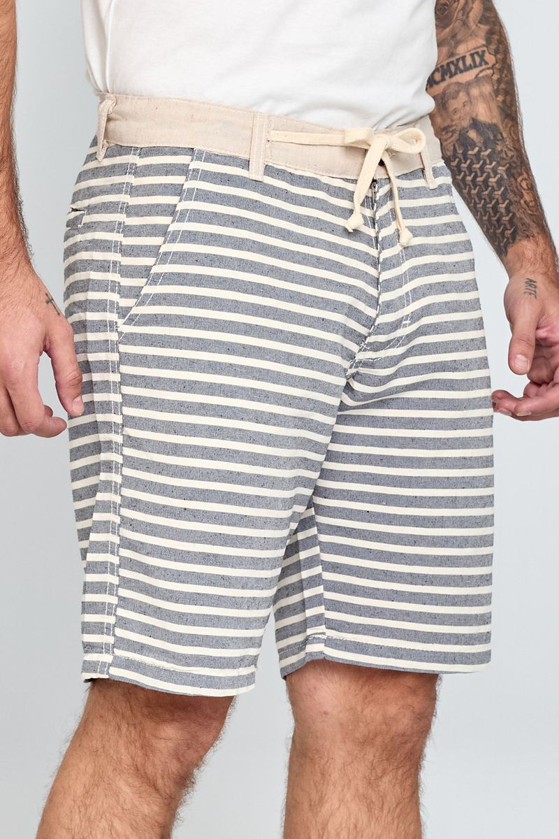 Bermuda listrada com tecido sustentável e design contemporâneo.