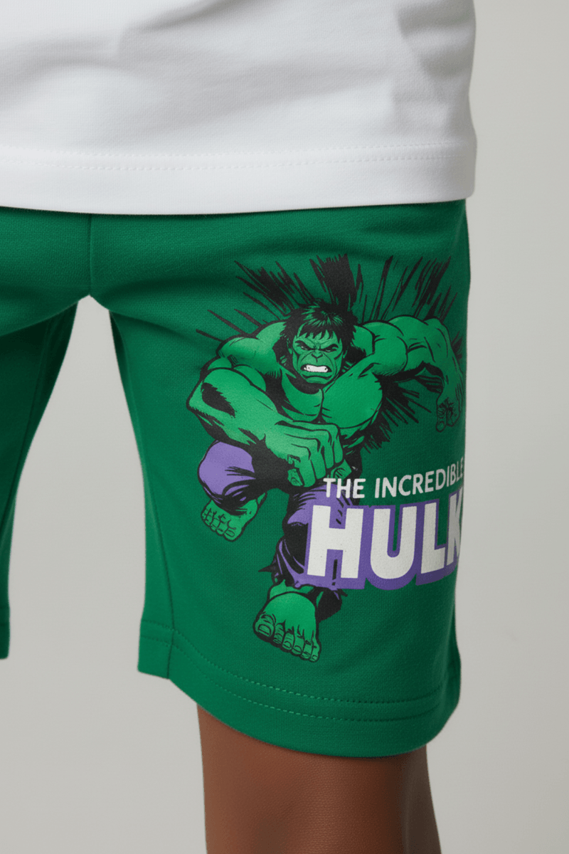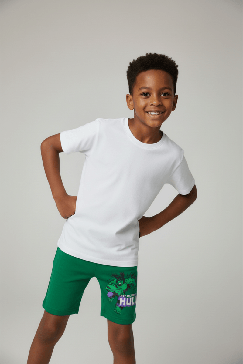Combine esta bermuda verde do Hulk com uma camiseta branca básica para um visual clássico e despojado, ou ouse com uma camiseta colorida para mais personalidade. Complete o look com um tênis confortável para as brincadeiras e um boné para proteção e estilo. Uma roupa versátil para diversas combinações de moda infantil.