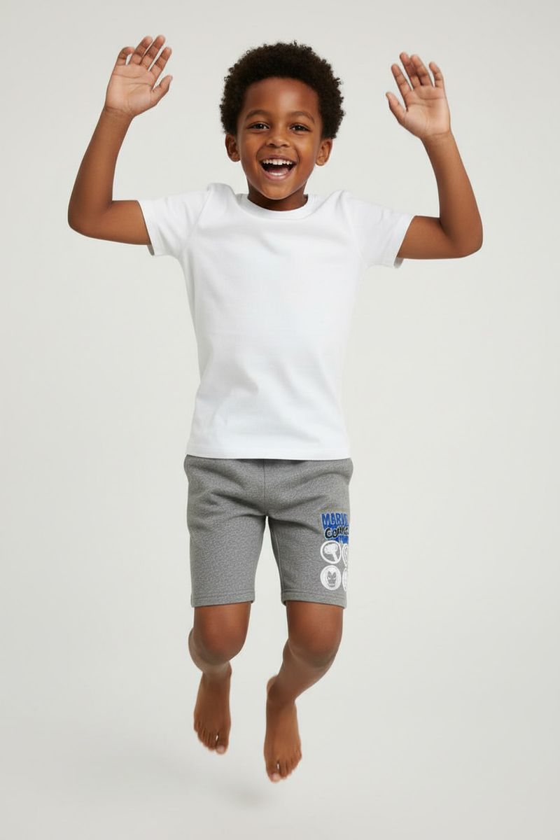 A Bermuda Infantil de Mooletoom Marvel Comics Caedu é ideal para os pequenos heróis! Confeccionada em 100% algodão e moletom sem felpa, oferece conforto e liberdade. O design cinza mescla com estampa dos Heróis Marvel garante um visual cheio de aventura.