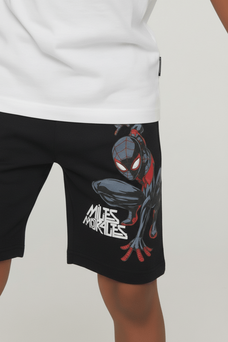 A Bermuda Moletom Miles Morales Caedu, de algodão macio, oferece conforto e liberdade. Com estampa vibrante do Miles Morales, esta roupa infantil garante estilo.